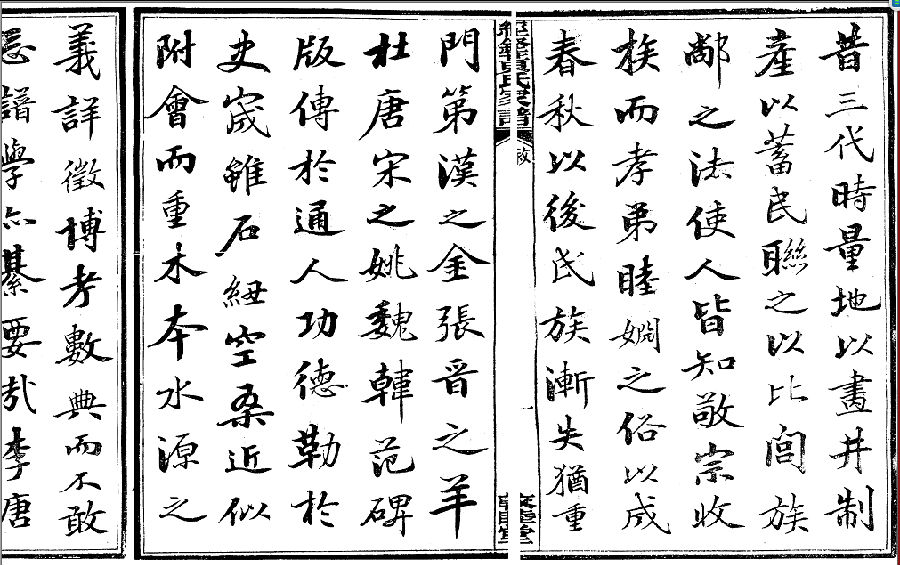 昔三代時量地以畫并制産以蓄民聮之以比闾族?之法使人皆知敬宗收族而孝弟睦婣之俗以成春秋以後氏族漸失猶重